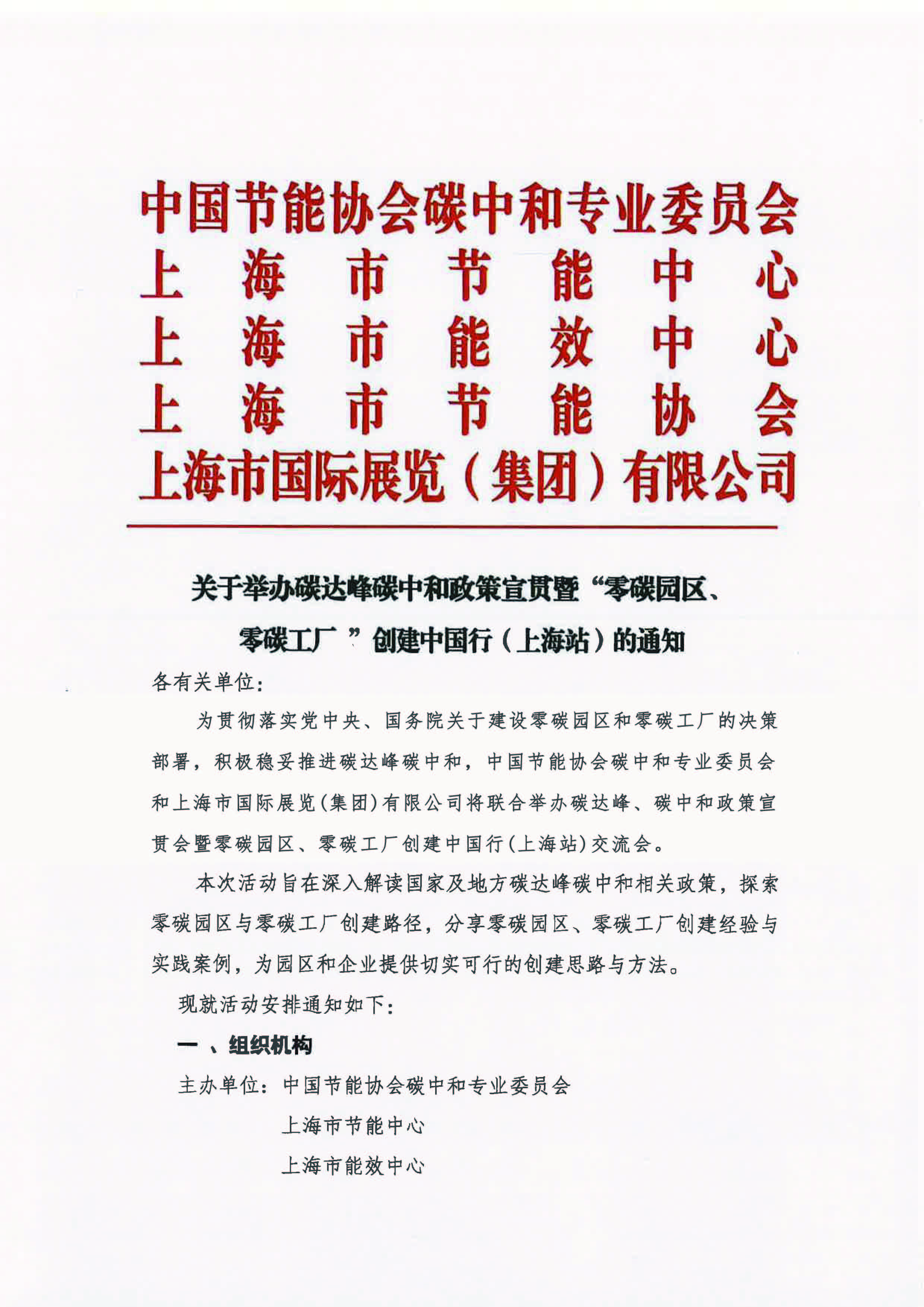 关于举办碳达峰碳中和政策宣贯暨“零碳园区、零碳工厂”创建中国行(上海站)的通知
